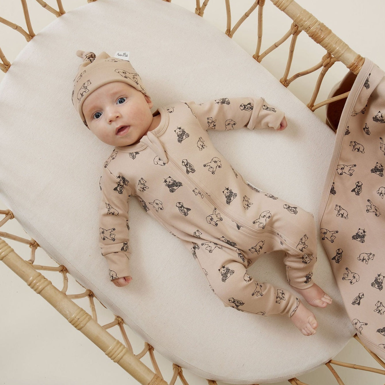 Designed for day or nightwear, Aster & Oak zip rompers feature long sleeves with cuffs, protective zip covers and a 2-way YKK zipper for convenient and fuss-free changes. They are made from certified organic cotton & natural dyes making them gentle and breathable on your newborn's delicate skin. The perfect all-in-one style for keeping your little one covered and warm this winter!Â