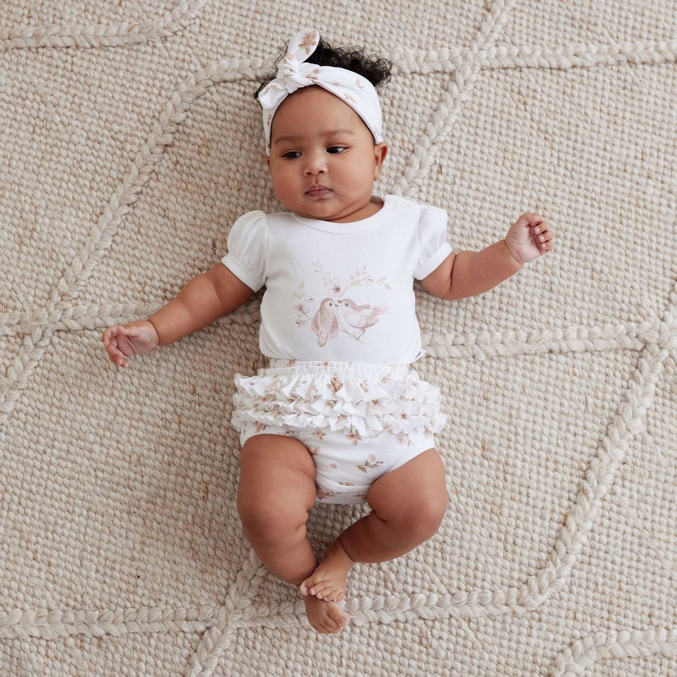 Prepare to fall in love with Aste & Oak's Blossom Print Onesie, featuring a beautifully soft, hand-illustrated watercolour bird design. This onesie boasts dainty puff sleeves and premium YKK snap buttons along the shoulder and crotch for effortless changes.