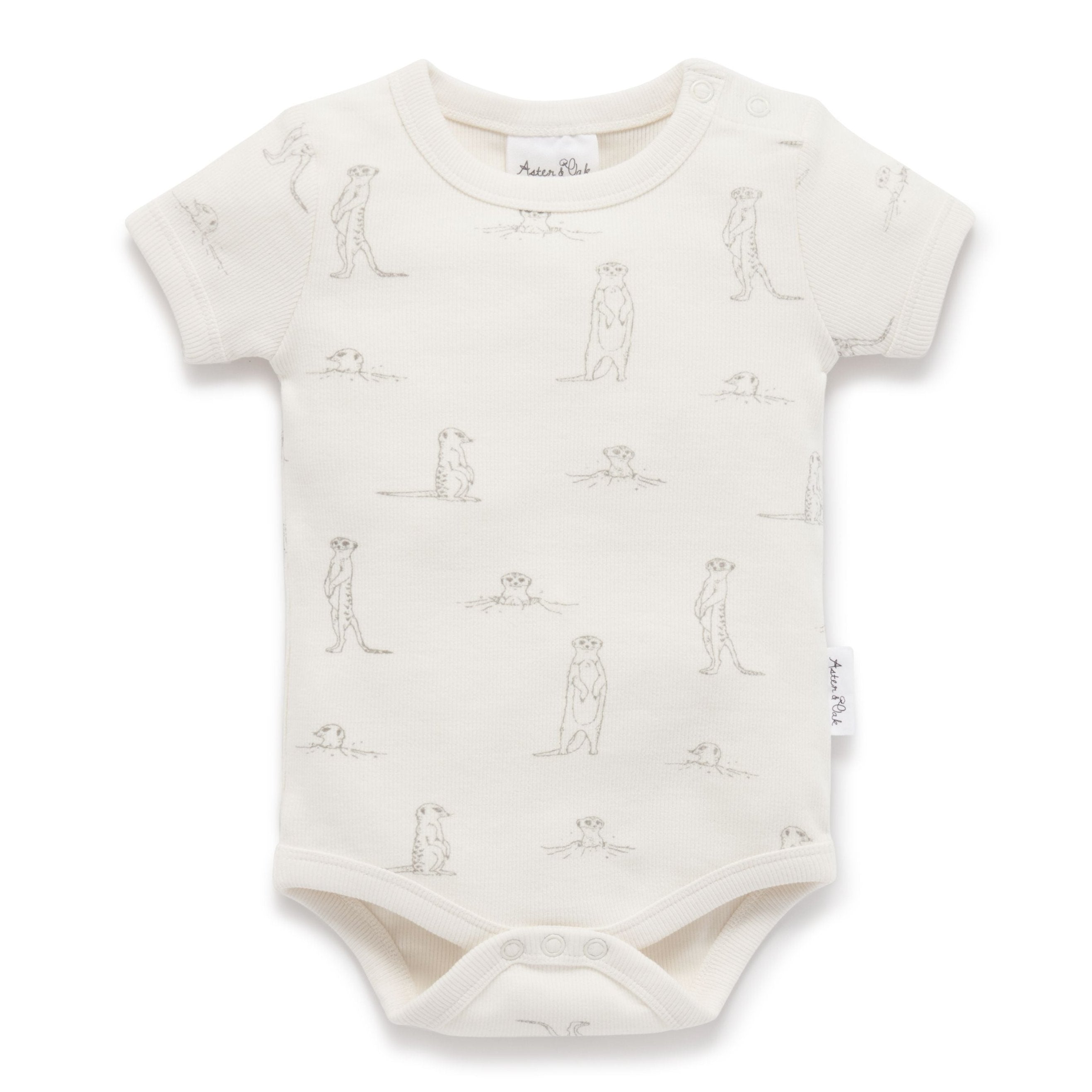 Crafted from certified organic cotton rib and featuring a hand-drawn all over design the Meerkat Rib Onesie has been made for maximum comfort and flexibility.