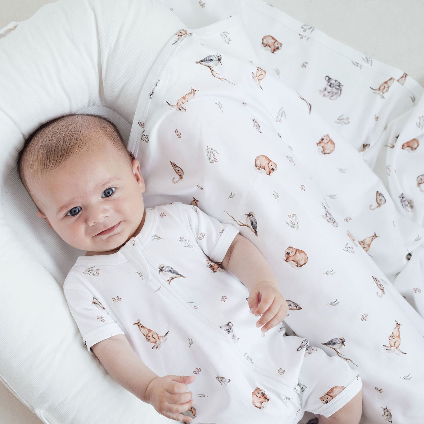 The perfect addition to any animal loving little one's room; the wrap features an all-over iconic Australian animal print. The wrap is both practical yet fun and is a versatile gender-neutral design. Made from the gentlest GOTS-certified organic cotton, it offers lightweight breathability and a touch of stretch - perfect for swaddling, snuggling, or on-the-go comfort.