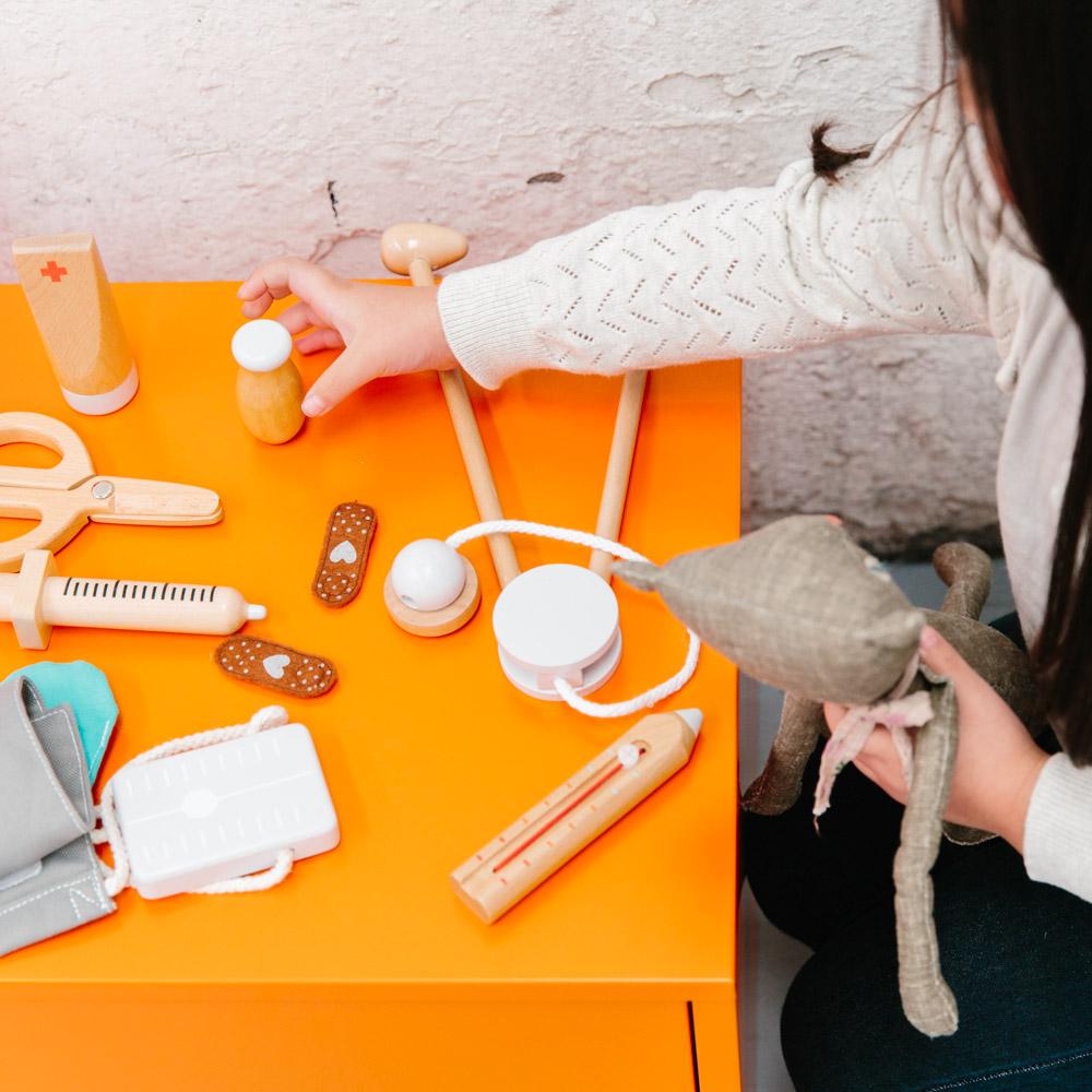 I got a bad case of lovin' you, as Robert Palmer would say. So next time you need a doctor in the house to save the day, make sure you have this wooden iconic Doctors Kit on hand. Set-up a hospital scene at home and let your child’s unfettered imagination go! This fantastic role play kit helps children to become familiar with medical care, making trips to the doctor less painful for everyone. It also promotes imaginative play and encourages nurturing behavior and empathy — after all, Kitty-Kat needs some help with her broken leg! We made our kit gender-neutral to celebrate the fact that these days anyone can aspire to be a doctor or nurse.