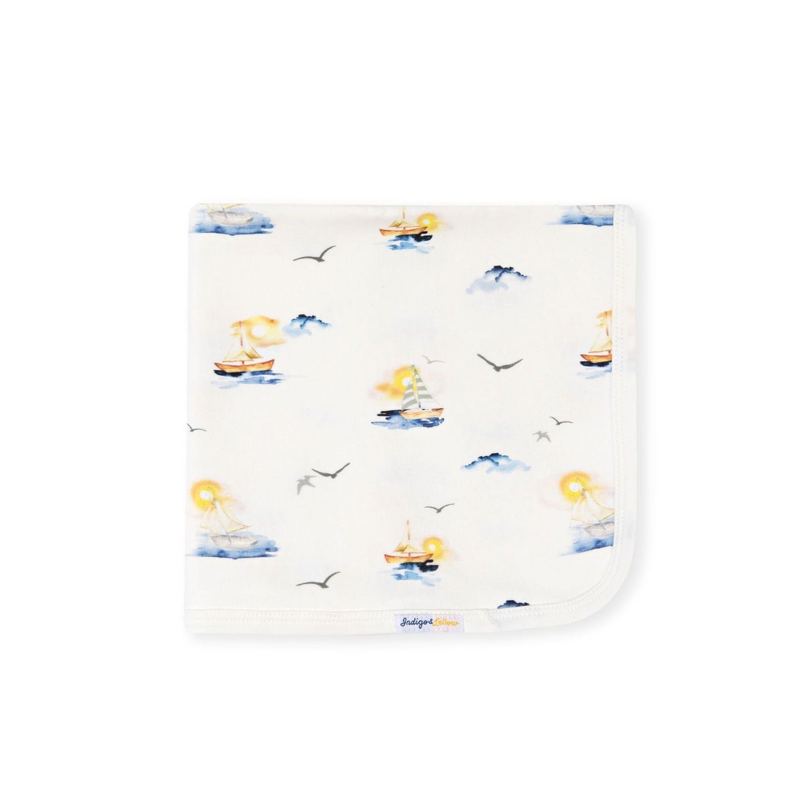 This beautiful Sailboat print bunny rug is stretchy and features a hint of elastane for added stretch. Size 120 cm x 120 cm.