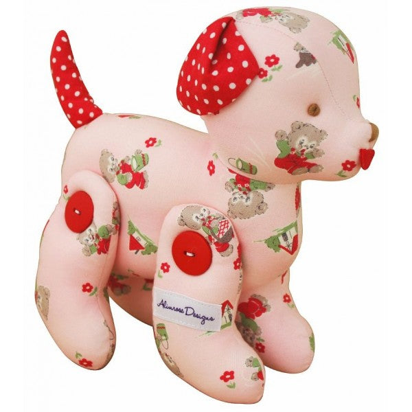 Beautiful, soft toy puppy in a pink and red design. This stylish puppy has moveable legs, ears and a tail, would make a wonderful gift or a prefect nursery decor piece.