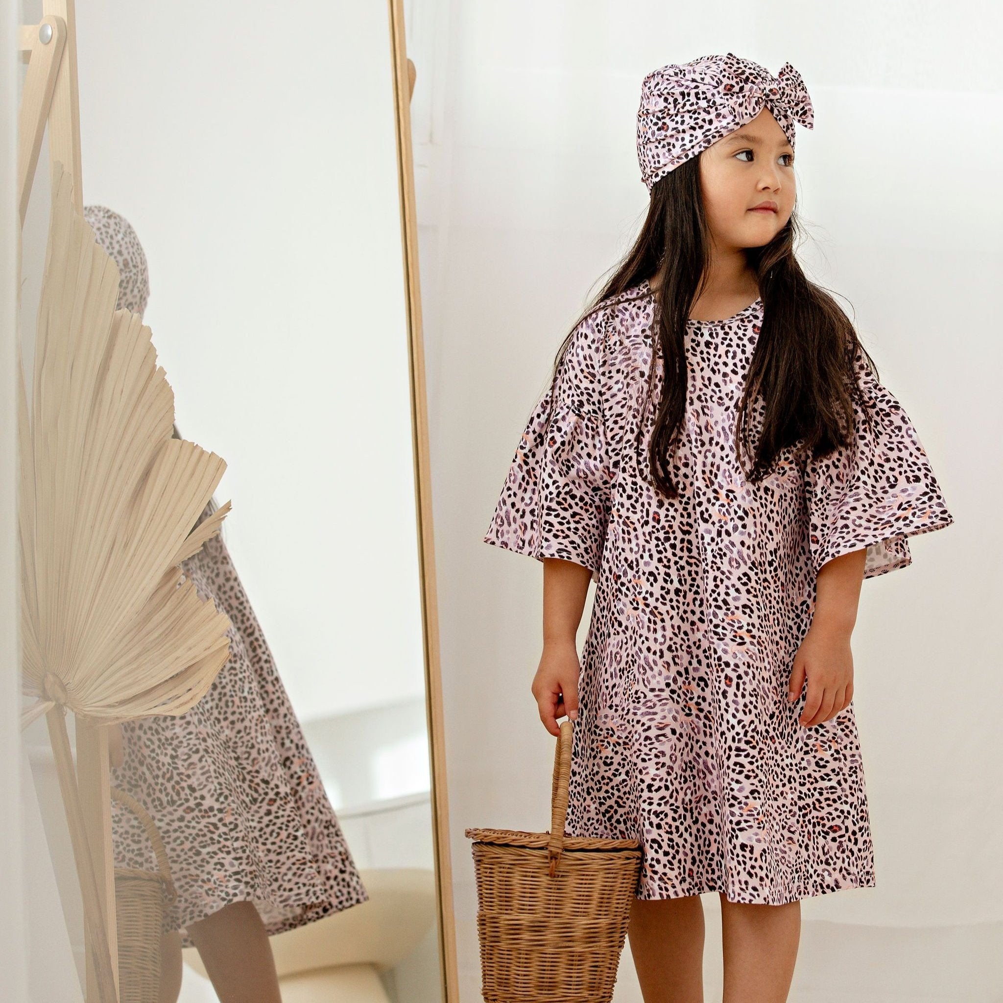 This beautiful lilac leopard print puff dress is a new shape this season for Kapowkids that features a loose-fitting style and accentuated sleeves for drama. It's an easy pull-on style that's really comfy to wear.