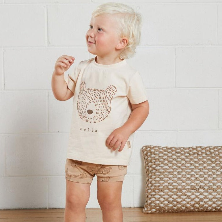 Show that soft side with our Teddy Coco Placement T-shirt! This cutesy beige cotton tee is sure to win over your heart, featuring a playful bear placement print for a fun and unique look. Perfect to wear with our matching Teddy Coco Bloomers.