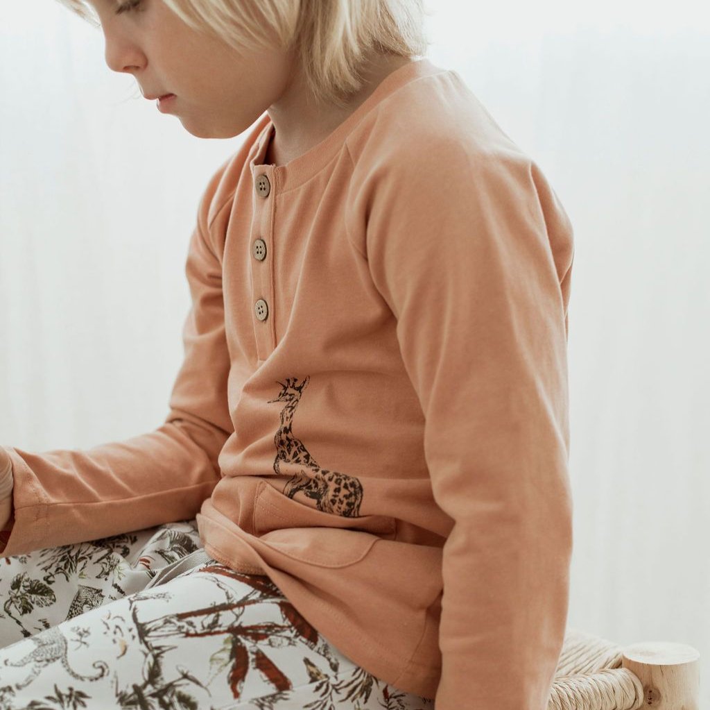 Plain Nectar (apricot colour) long sleeve t-shirt made from the softest cotton jersey material and designed to be paired with the Vintage Safari pants.