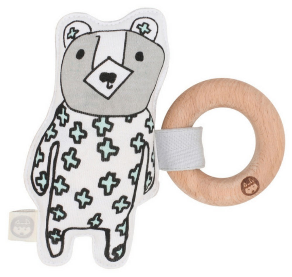 To clean your beech wood ring, remove it from the rattle clip and wash with a soft cloth in warm water with eco-friendly soap.