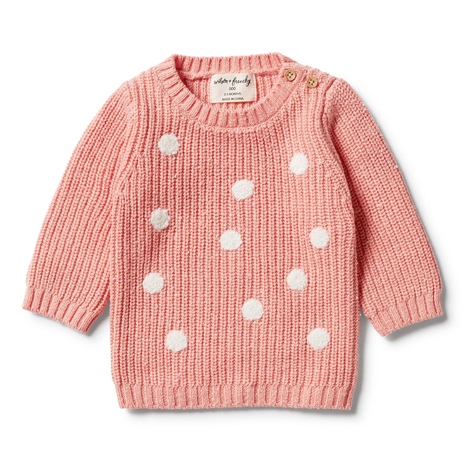 A winter essential for little explorers, this rib knit jumper features a contrast coloured embroidered polka dot design. Made from a blend of Cotton, Bamboo and Wool, it's both beautiful and functional. Pair back with a matching beanie.