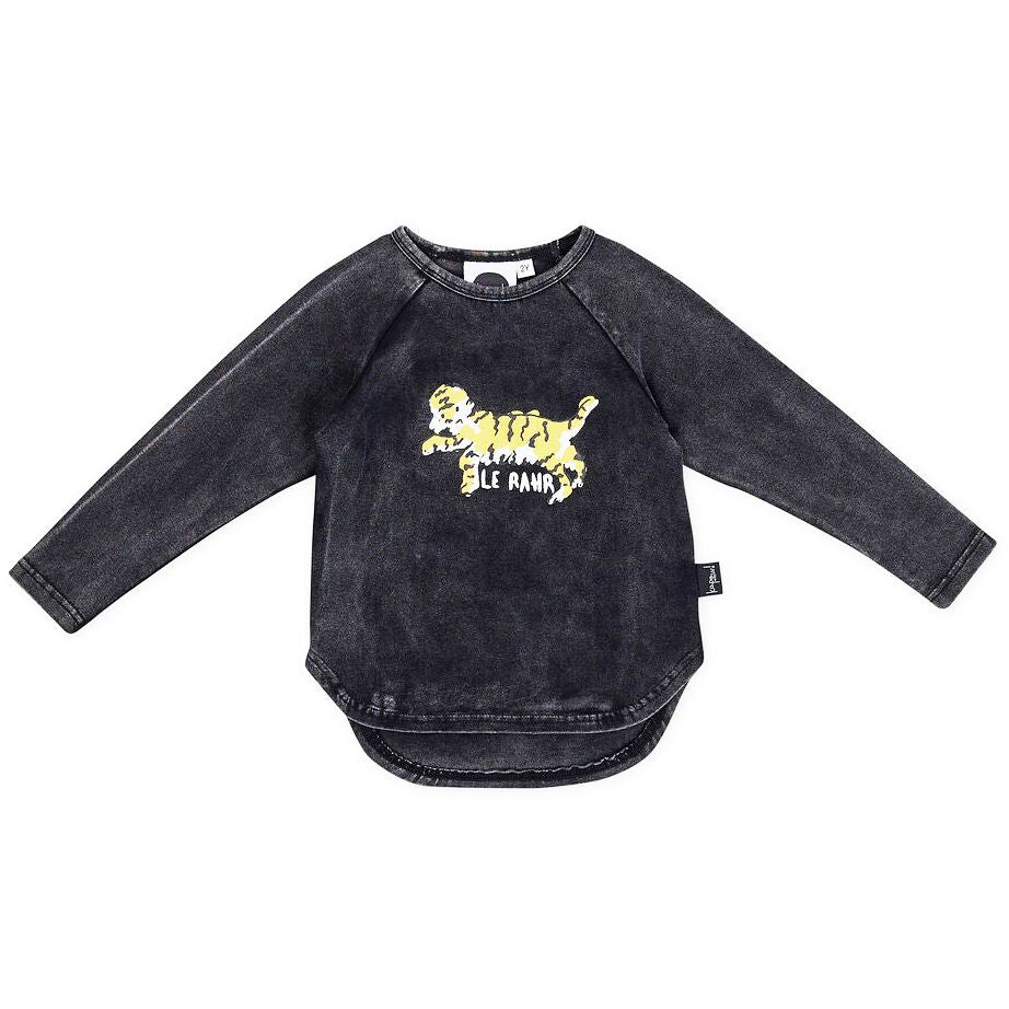 If a French Tiger could talk it would totally say, “Le Rahr” right? Your little Tiger cub will fall in love with this sweet hand drawn placement Tiger print T-shirt. We love designing clothes that your kids will love to wear! Pair this top with the matching Le Rahr Tracksuit Leggings or underneath the Le Rahr Yardage overalls.