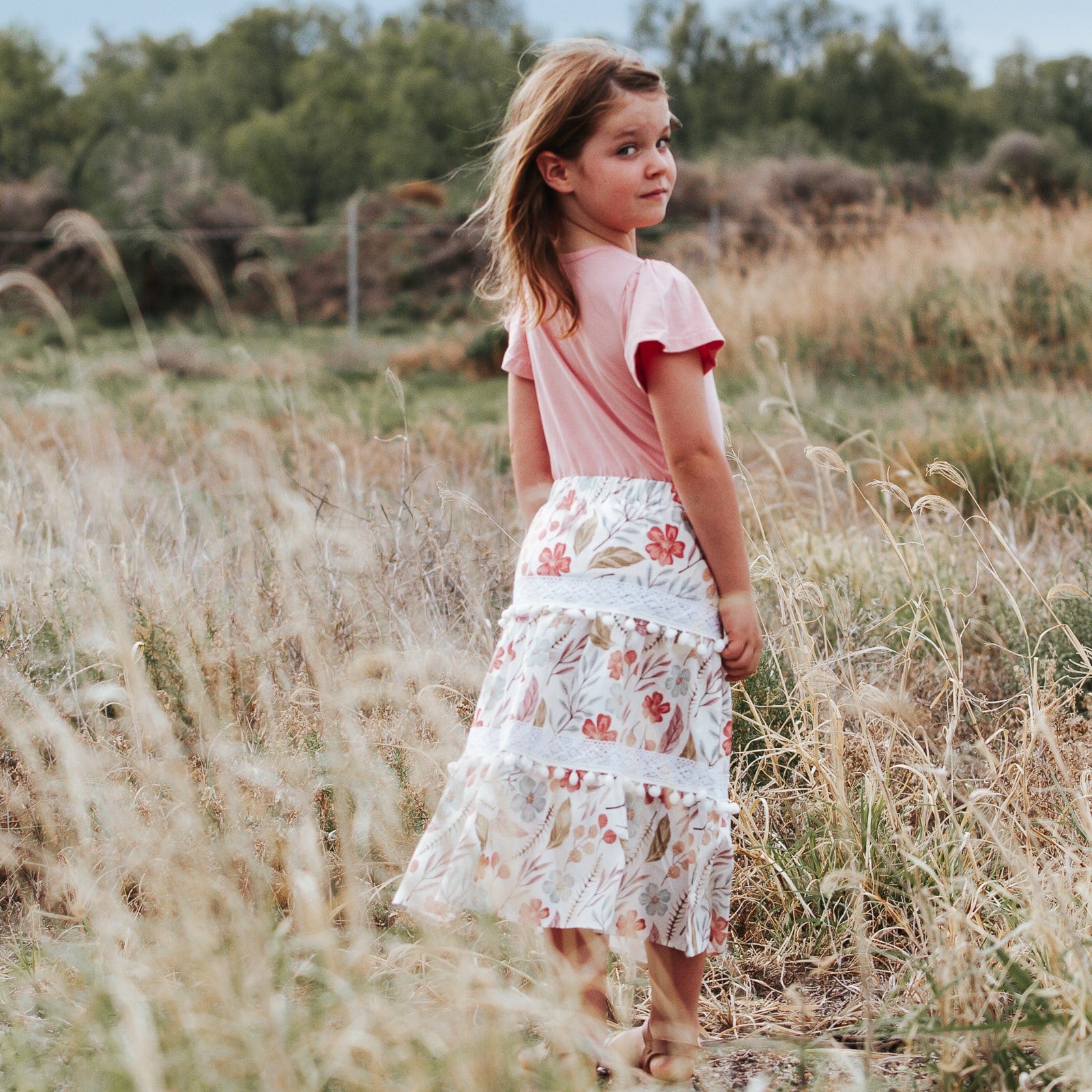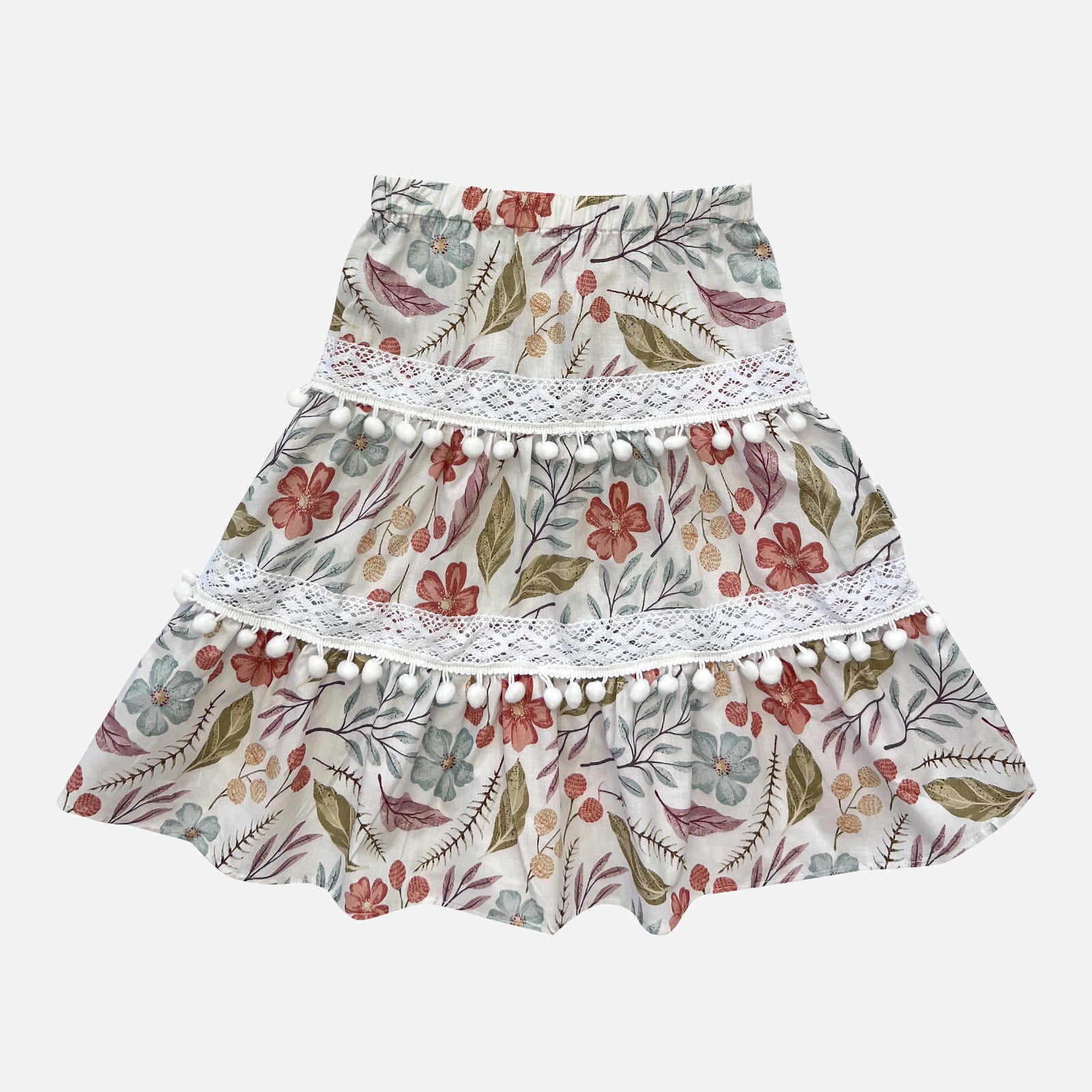 The Girls Maggie Skirt in Fairyfloss Floral is a classic and cute choice for your little one. It features an elastic waist, a tiered A-line silhouette and pretty pom pom details and cotton lace for a playful, fun look. A perfect and cheerful holiday style that makes a statement!