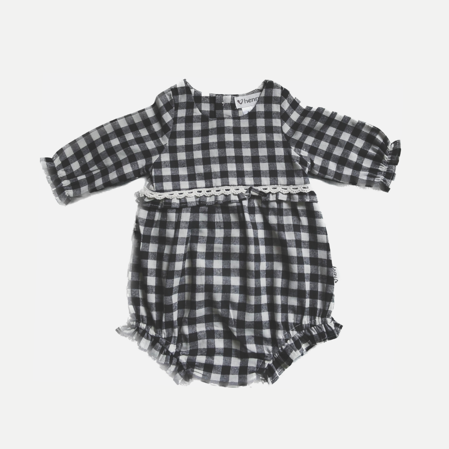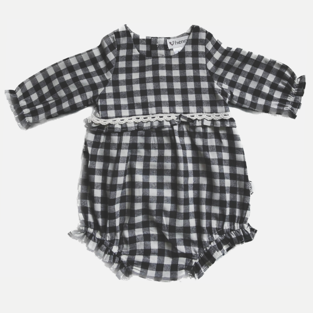 Beautifully light and airy cotton in one of Love Henry's signature prints of the season, this is their winter twist on their winning summer style. This simple romper lets the fabric do all the talking. Easy for baby to wear and move around in due to the elasticated legs, easy access press-studs for changing and slight voluminous fit.Â