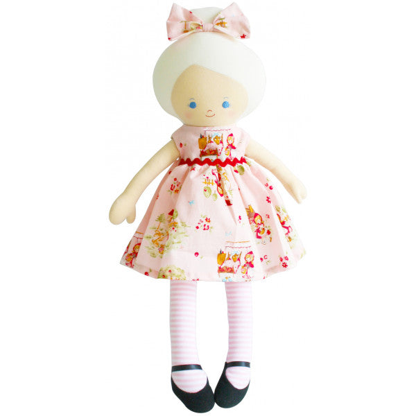 Beautiful, soft and cuddly Maggie Doll with Pink Nursery dress from Alimrose Designs. A beautiful addition to any girls room, ideal for playtime, decor or as a special keepsake.