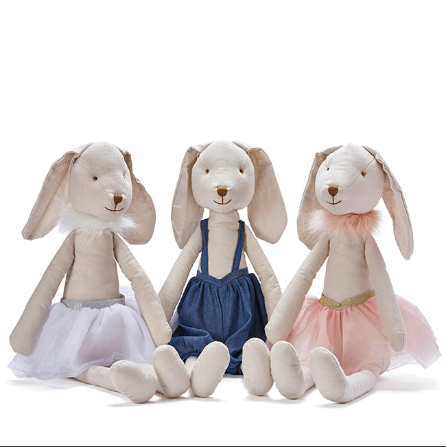 Meet Major, the effortlessly cool bunny with a heart of gold and a mind full of big ideas. While his denim overalls may look like he’s ready for a day in the veggie patch, don’t be fooled—Major’s more at home sipping kombucha and spinning vinyl at his favourite local organic café. A self-proclaimed philosophy buff, Major prefers quiet contemplation over cartwheels, making him the perfect plush companion for thoughtful little ones.