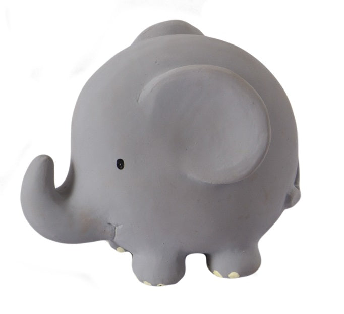 An adorable all rubber elephant teether that is great for little hands to grab and squeeze. Features a little bell that rattles inside to delight and entertains little ones. Fully enclosed for hygiene safety.