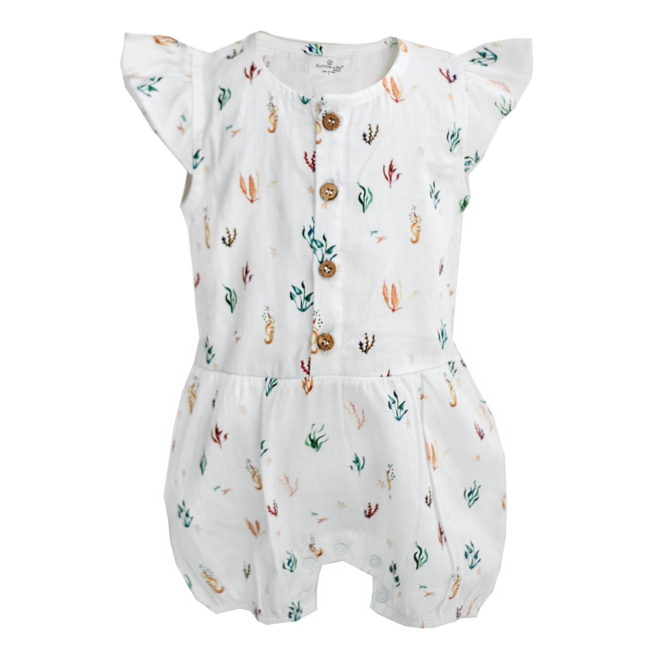 An instant summer classic, Burrow & Be Ocean Flora Painting Alice Romper is a wardrobe winner for summer babies!