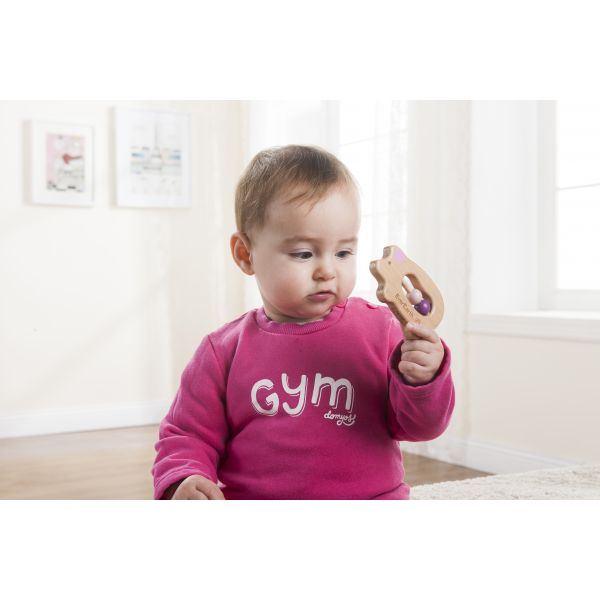 This cute little wooden Pig grasping toy is lovely for babies to hold shake and even bite. This lovely grasping toy helps with babies' development skills and also doubles as a teether.