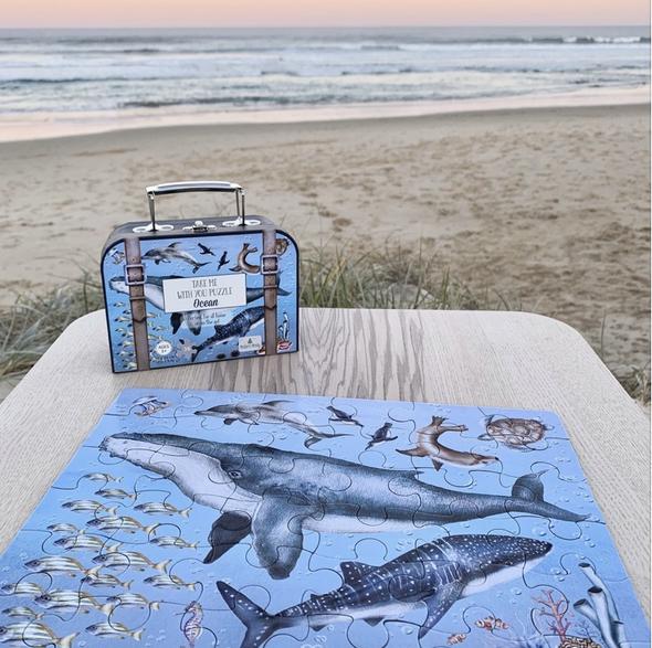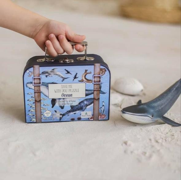 Ocean "Take Me With You" Puzzle is a stunning 36 piece jigsaw puzzle, packaged in the sweetest mini suitcase with a durable metal handle and latch. The puzzle pieces themselves are made of recycled materials and will be found inside a luxe paper bag to ensure this is another earth-friendly, ZERO plastic product.