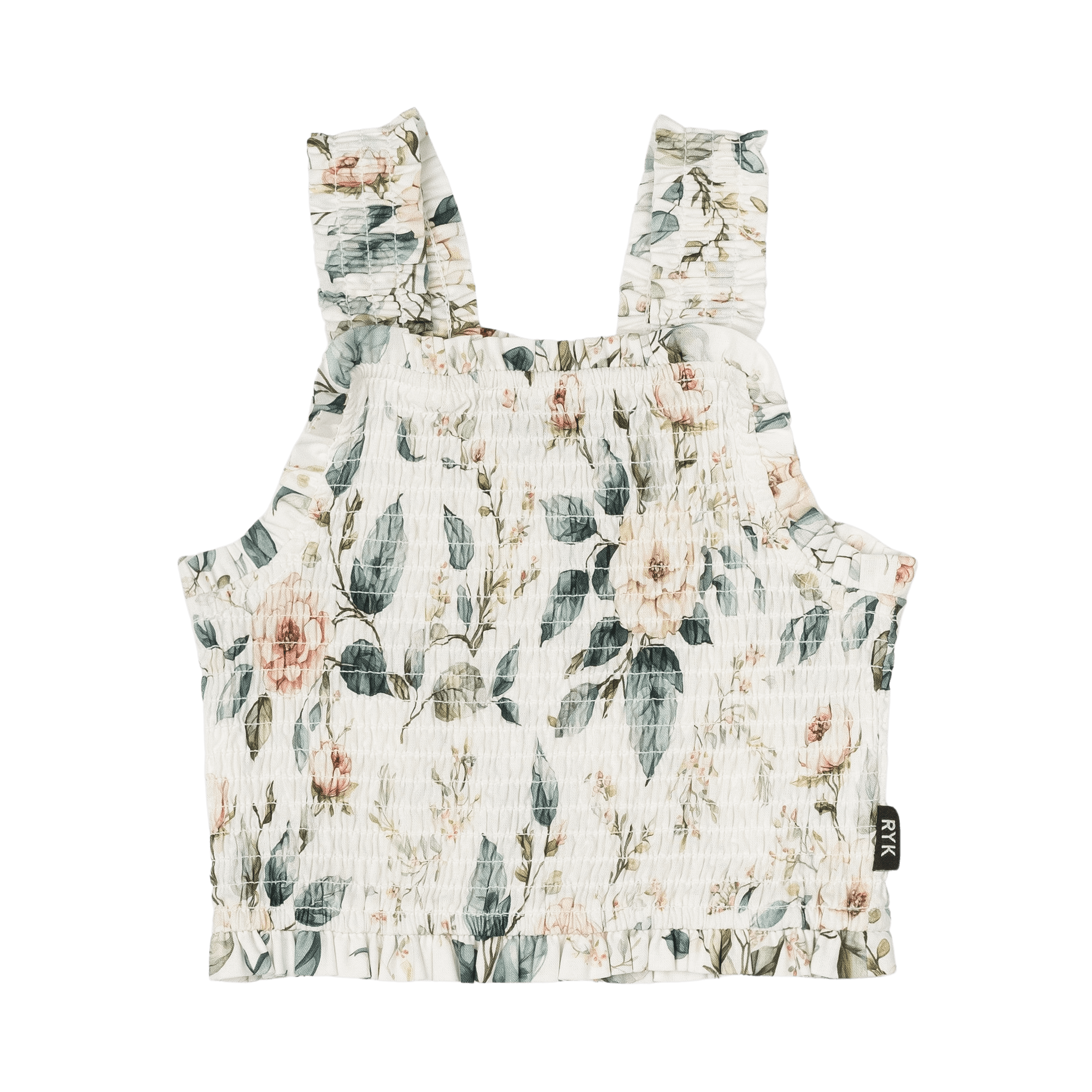 Rock Your Baby's Adeline Shirred Top is all about sweet charm! Made from woven cotton, this top feature elasticated straps, a shirred bodice, and playful frill details. Its soft cream base and vintage floral print make it the perfect addition to any wardrobe.