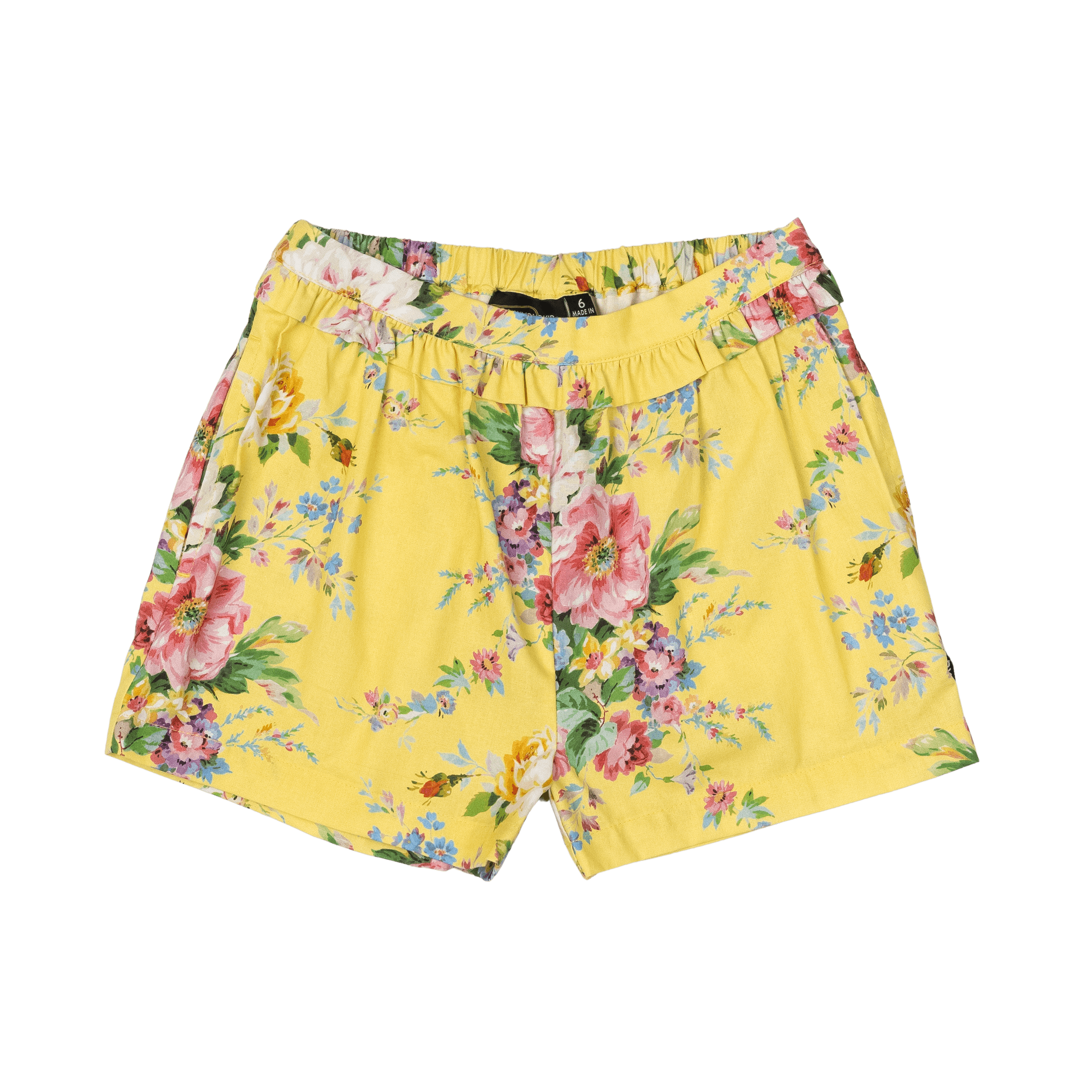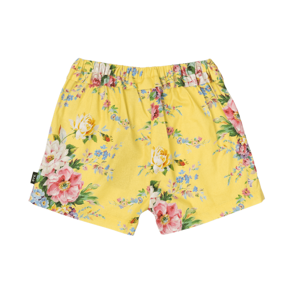 Step up your style Rock Your Baby's Beatrice Shorts! Featuring an elasticated waistband and side seam pockets, these woven cotton shorts with a yellow floral pattern and frill waist add a fun, playful vibe to any look.