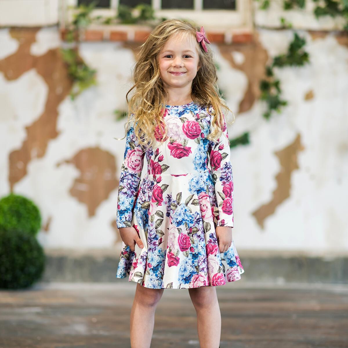 This sweet Lena waisted dress has a beautiful floral print, perfect to add cheer to the winter days. Layer with tights or go without for trans-seasonal dressing.