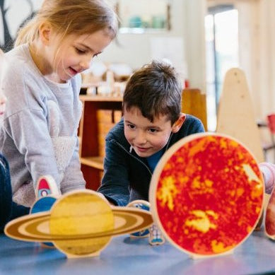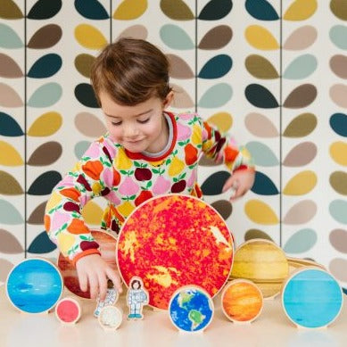 Time to explore our universe by taking a trip into space. This 12 piece solar system comes with all the planets in our solar system, both a male and female astronaut and a rocket. Perfect for imaginative play as well as a great conversation starter to introduce interesting facts about our Solar System. This is an excellent toy for children to promote social and imaginative play while encouraging them to feel positive and confident while they learn through play. The generously sized pieces have been printed using non-toxic heat transfer technology to ensure longevity of the artwork.