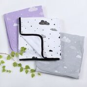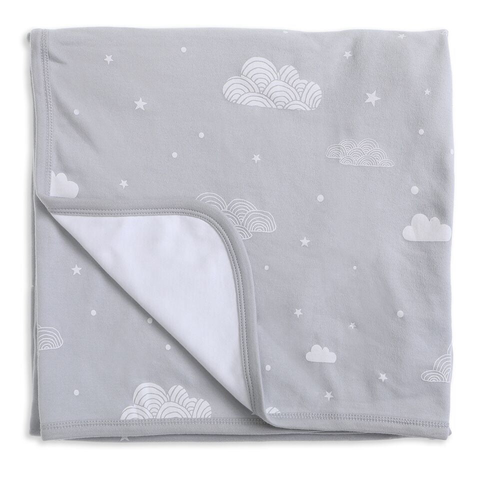 This organic cotton The World Double Sided Blanket is super soft, reversible and a huge 110 x 110cm, making it perfect as a newborn swaddle wrap, throw rug, picnic blanket or just to snuggle up to! One side has our “These Small Hands Will Someday Help Shape The World” Print on it and the other side has our grey cloud print, all contrasted beautifully with a grey trim.