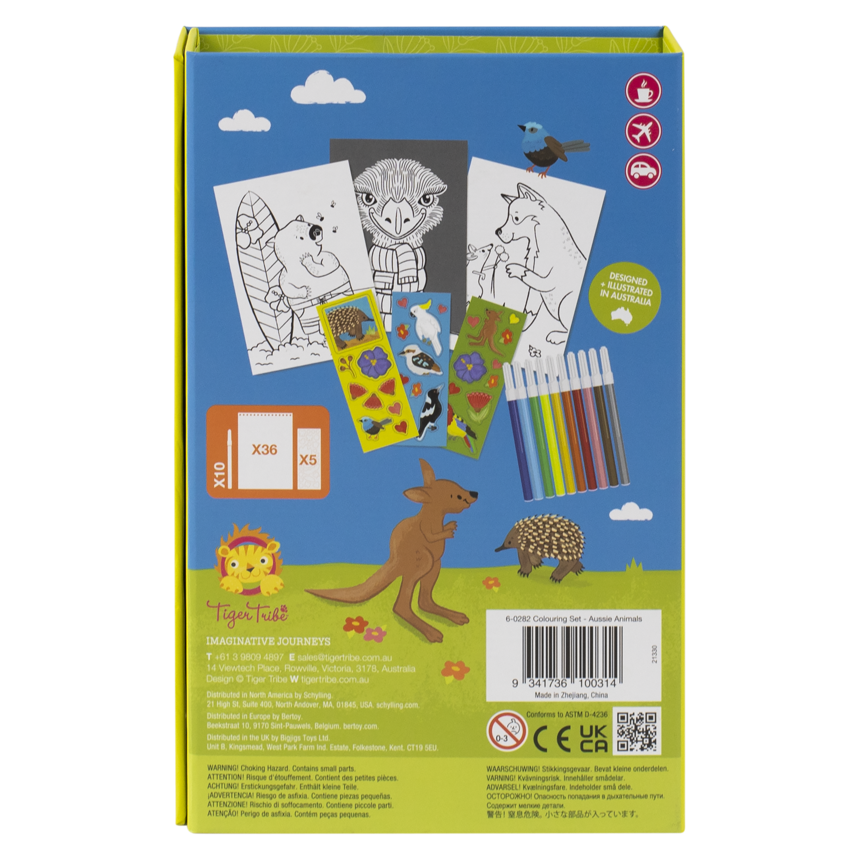 Kids can colour koalas, kookaburras, wombats and more in this very Aussie addition to our beloved colouring sets. Gumnut, wattle and flowering gum blossom stickers can be added to decorate the artworks to fridge-worthy status.