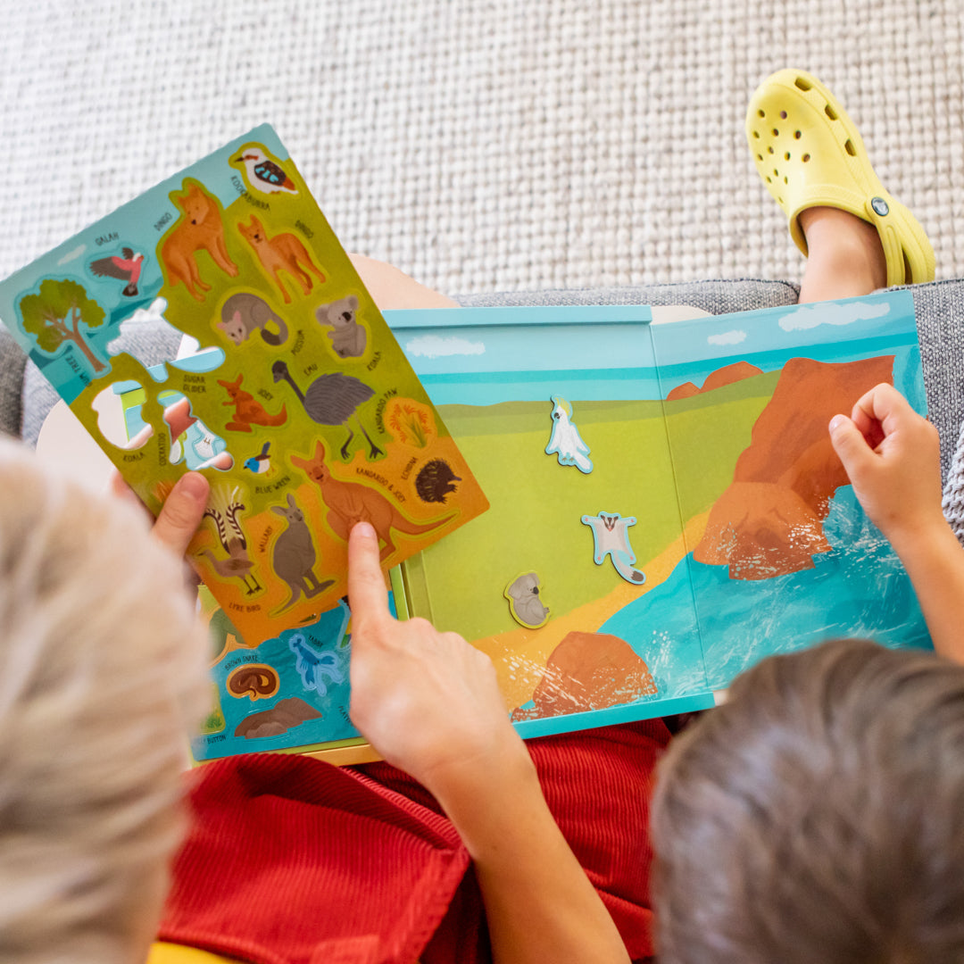 With a delightfully illustrated landscape on the magnetic fold out flaps, and an abundance of marsupials, reptiles and feathered friends on the press out magnet sheets, children can create a new scene and story with each play. Promoting independent and imaginative play while developing fine motor skills, cognitive development is also encouraged when matching the magnets to their placeholders, or identifying the unique featured flora and fauna.