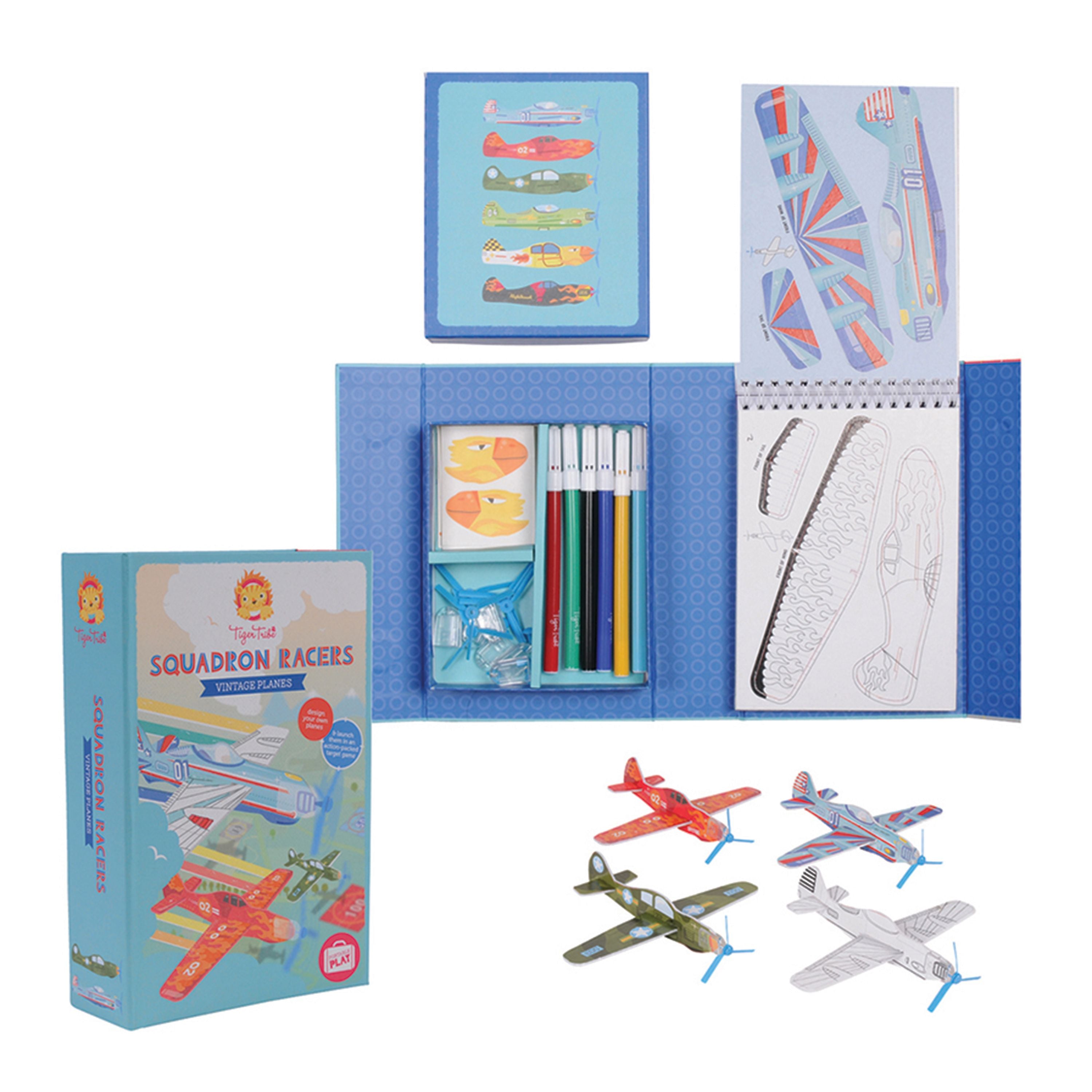Calling all junior fighter pilots! Time to report for FUN duty with Tiger Tribe’s Squadron Racers Vintage Planes — an awesome, all-in-one aerial game and creative activity set.