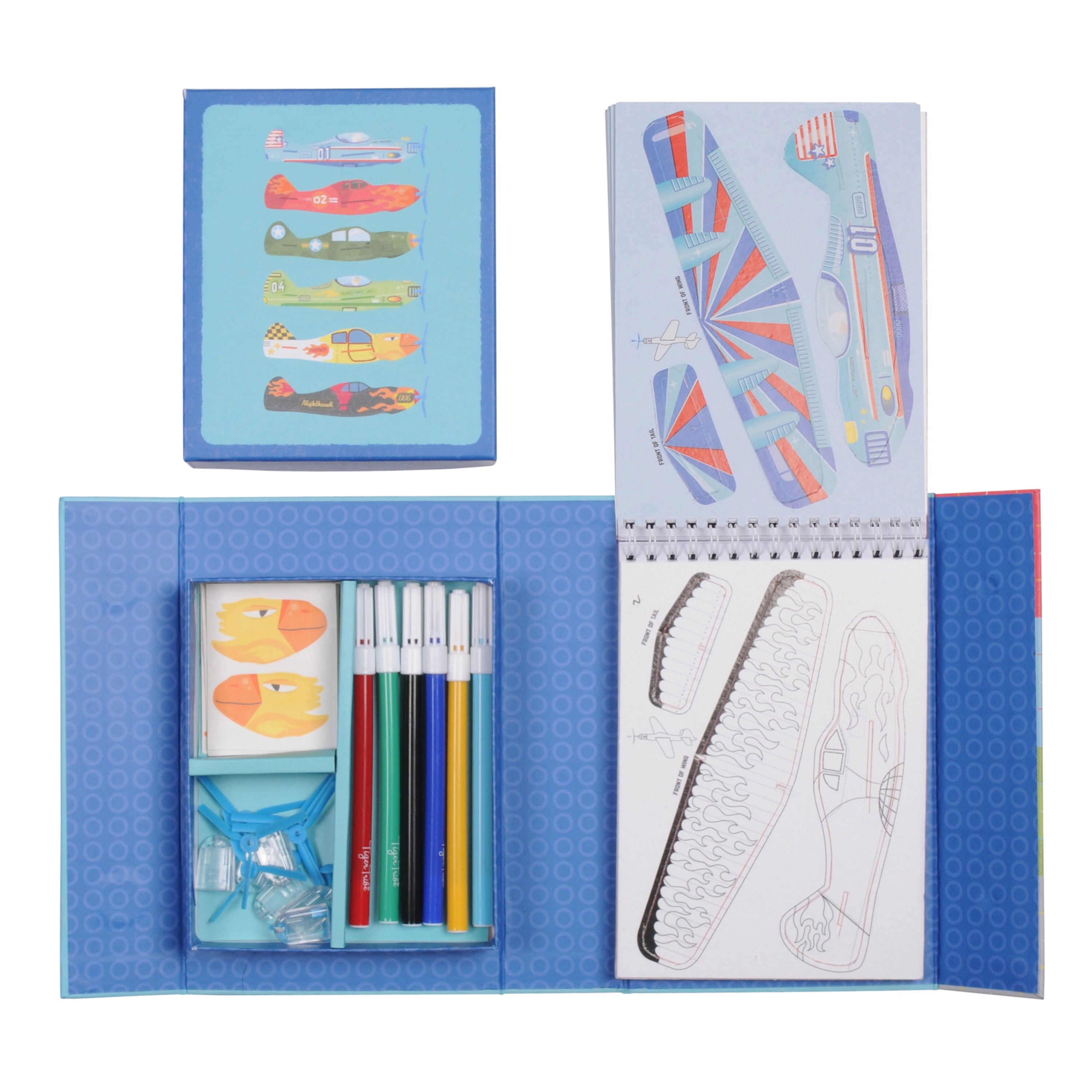 Pilots first select their plane, either design your own with stickers and coloured markers or select one of the coloured vintage planes. Pop them out and construct with easy tab and slot construction.