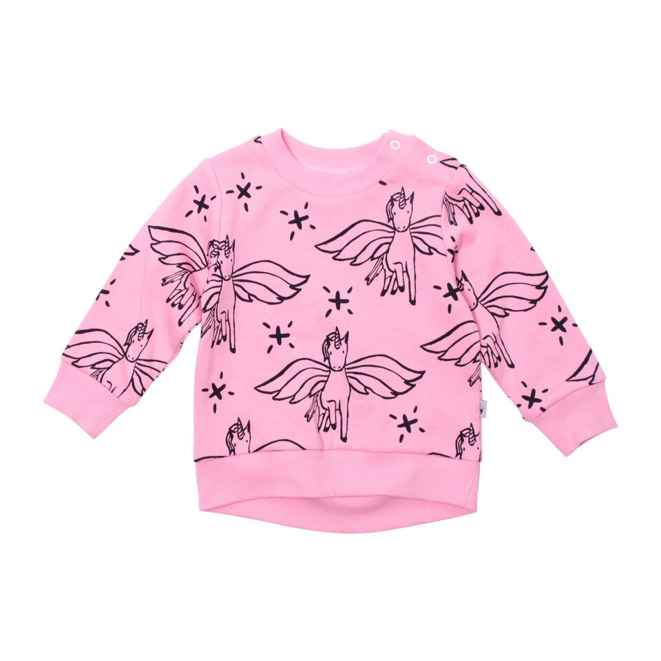 Cutest with our organic unicorn baby jumper. Featuring shoulder snaps for easy on- off dressing, and cosy cuffs and hem to keep out cool drafts.