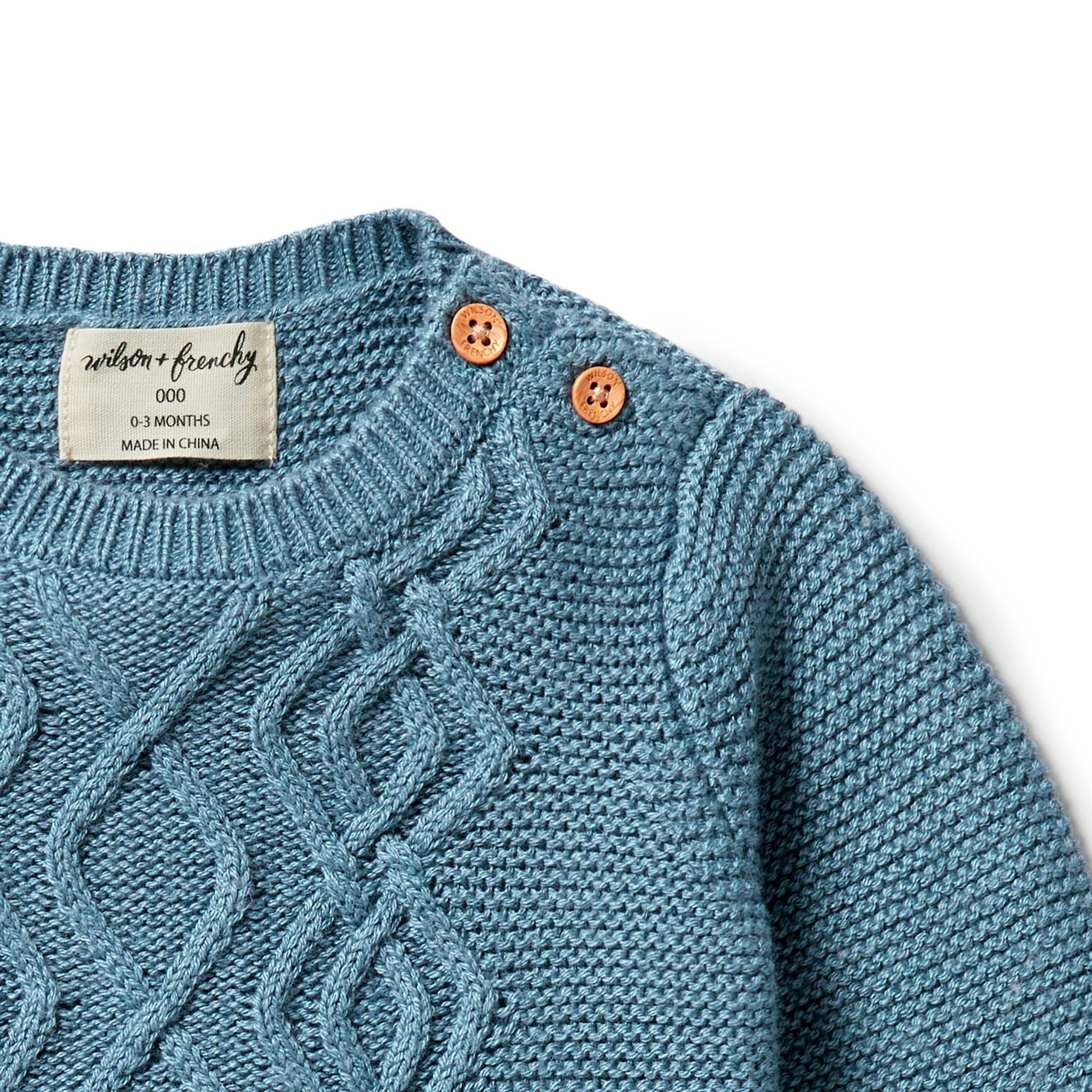 A winter essential for little explorers, this luxuriously soft Wilson + Frenchy knit jumper features a gorgous cable knit design. Made from a beautiful blend of cotton, bamboo and wool this long sleeve knit will add warmth and style to any outfit.