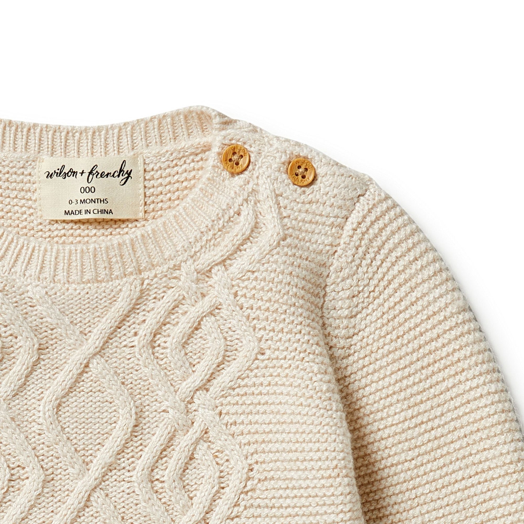 This luxuriously soft Wilson + Frenchy knit jumper features a gorgeous cable knit design. Made from a beautiful blend of cotton, bamboo and wool this long sleeve knit will add warmth and style to any outfit.
