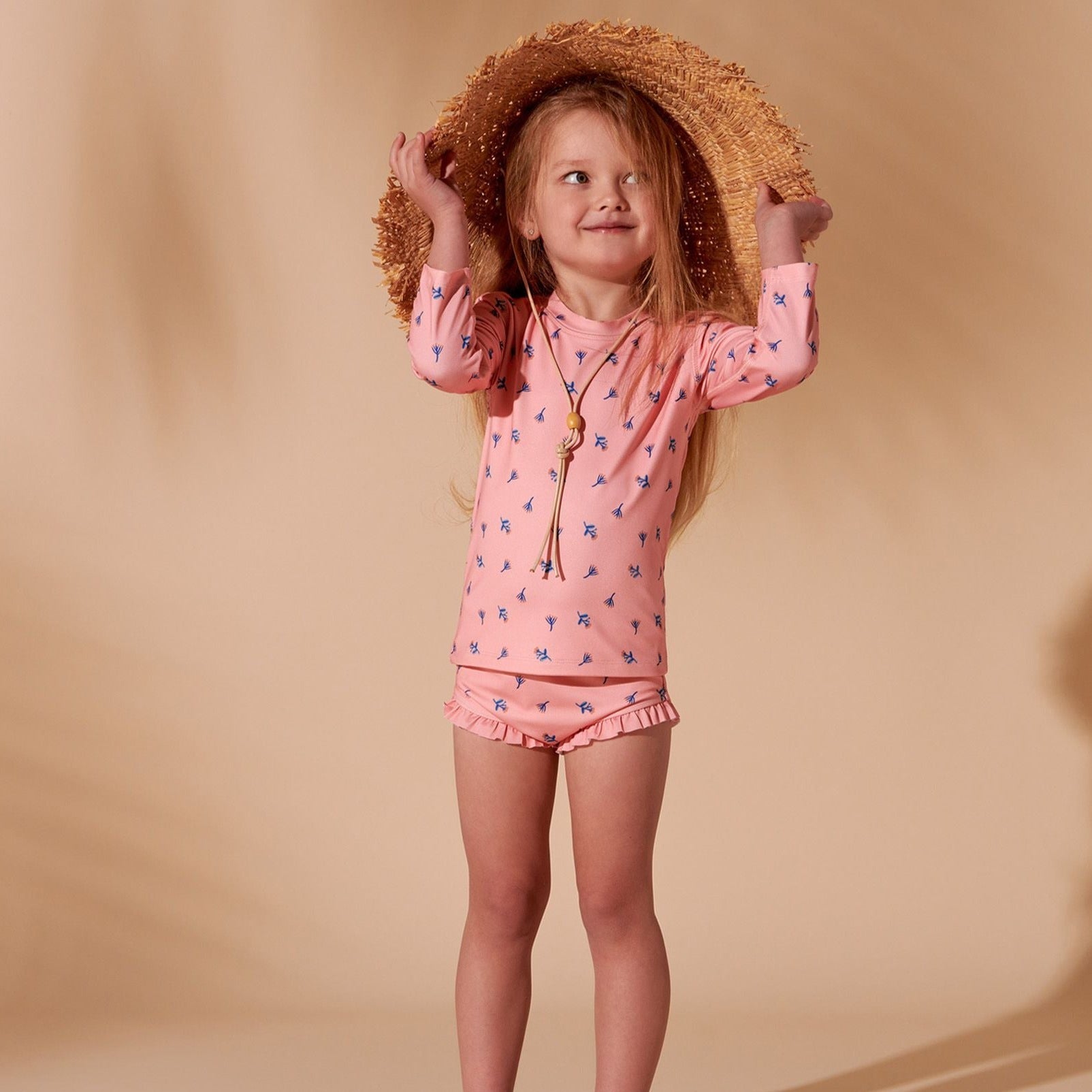 Wilson and Frenchy Rashie Swim Set is the ideal choice for the pool or ocean. It's made from recycled polyester fiber with a 50+ protection rating and fully lined, making it both eco-friendly and chlorine-resistant. This set comes with a long-sleeved, fitted rash top and fitted bottom that is designed for a secure and comfortable fit.