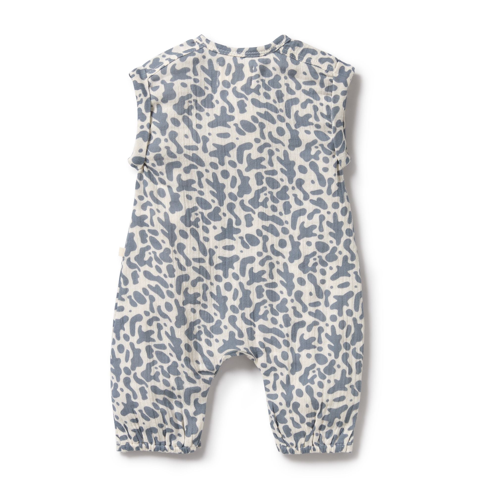 Get ready to keep your little one stylish and comfortable this summer with our organic cotton crinkle growsuit. This lightweight and breezy outfit features an all over print for a charming touch. The roomy fit and functional patch pockets make it perfect for babies and toddlers. And with a mock wood button front and snaps at the crotch for easy nappy changes, it's a must-have for any parent.