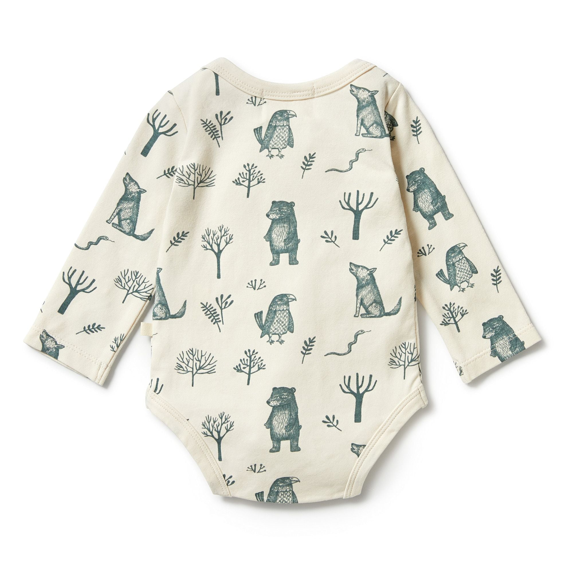 Key Features: Long sleeve with all over print. Envelope detail at neckline. Snap opening at in leg. Made from organic cotton.Â