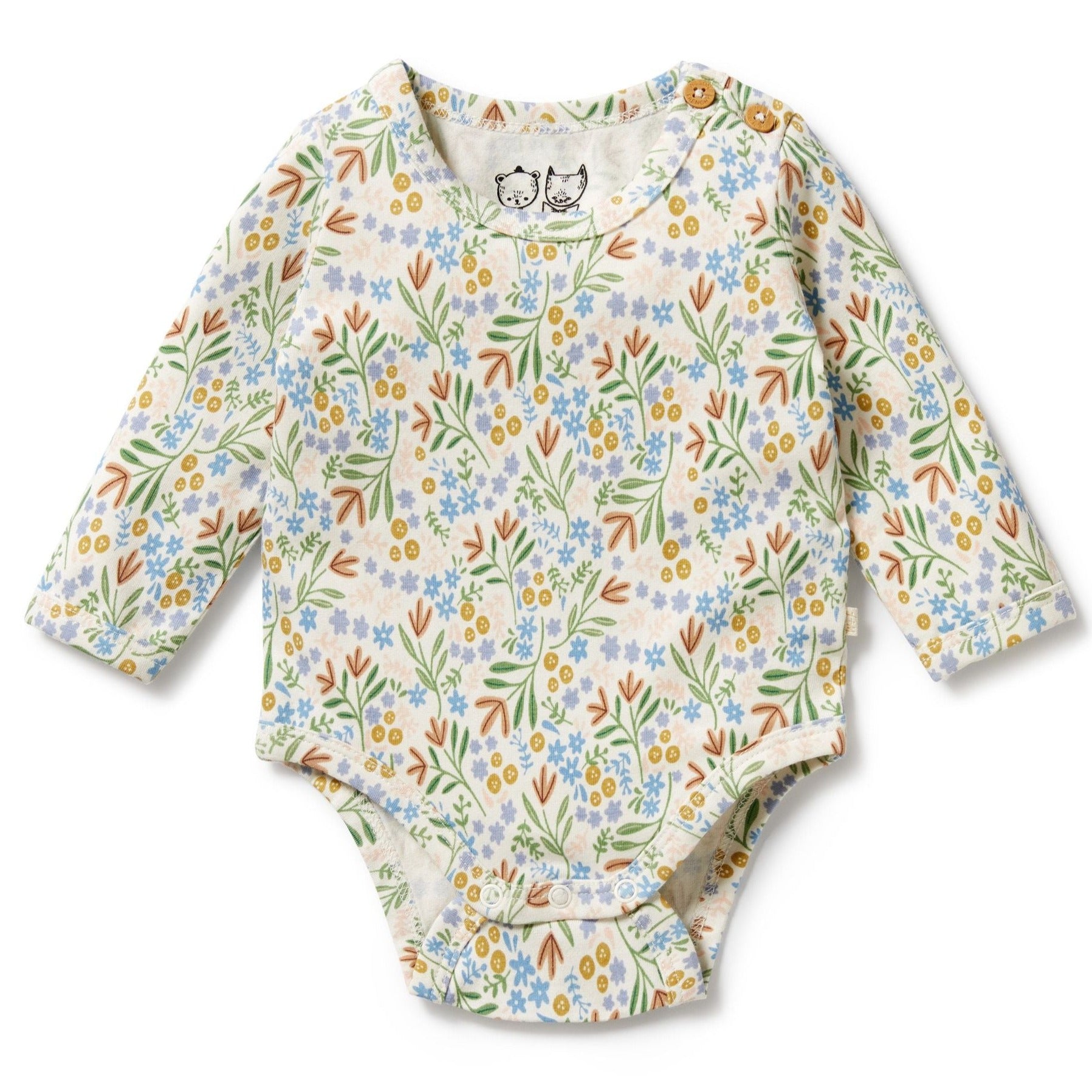 Discover the charming blend of comfort and style in Wilson & Frenchy's adorable organic long-sleeve bodysuit. With a playful ruffle neckline and unique hand-illustrated print, this little piece is a must-have for your baby's wardrobe. Easy snap leg opening offers hassle-free dressing and nappy changes, while the stretch organic cotton guarantees unrivaled comfort.