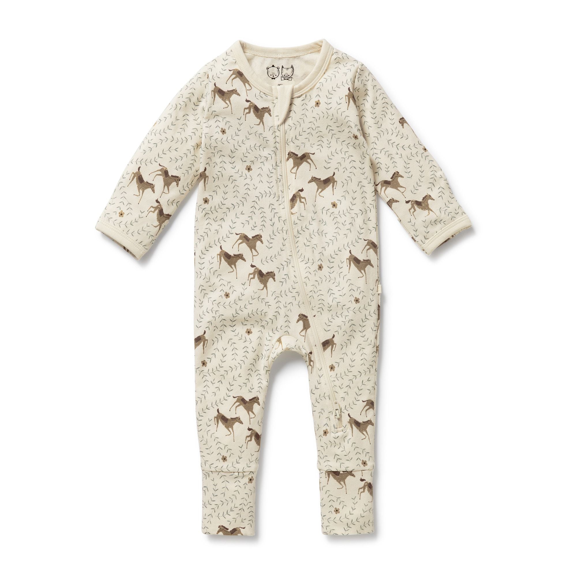 The two-way zip closure makes those late-night nappy changes quick and easy, while the fold-over mittens (available in sizes newborn to 000) help protect baby’s face from tiny fingernails. With the optional footed design, this full-length suit is perfect for all-day wear and sleep. Featuring a beautiful hand-illustrated print, it’s as stylish as it is functional.