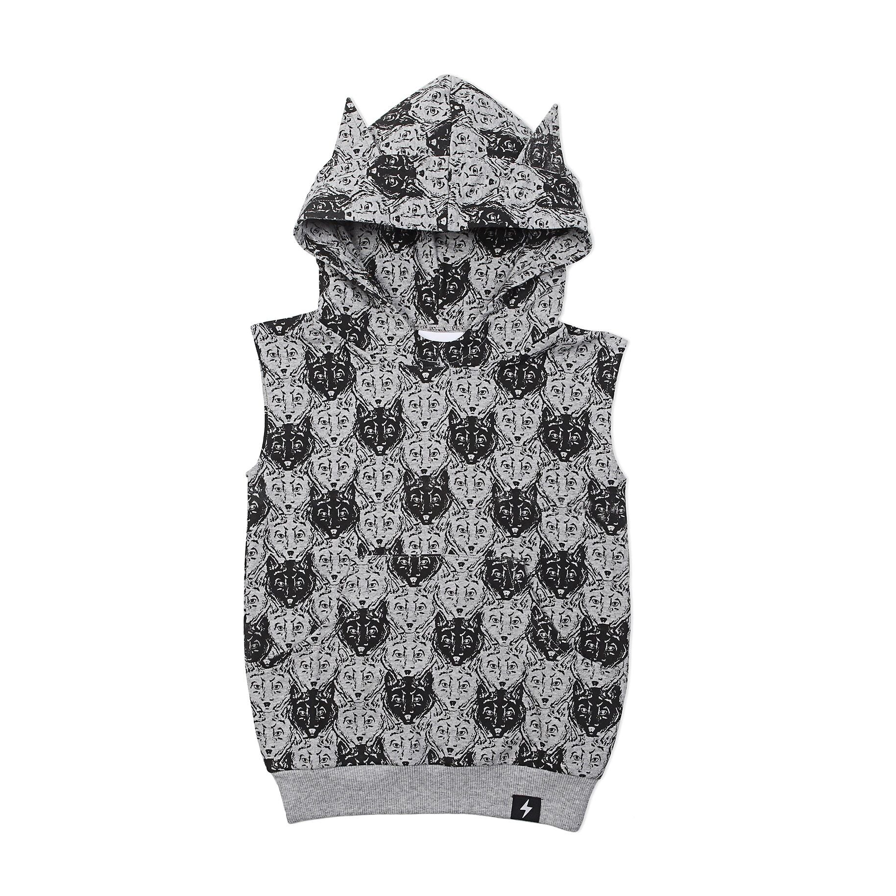Grey Marle colour with exclusive KaPow Wolf Print in Black French Terry Wolf Ears on Hood KaPow...